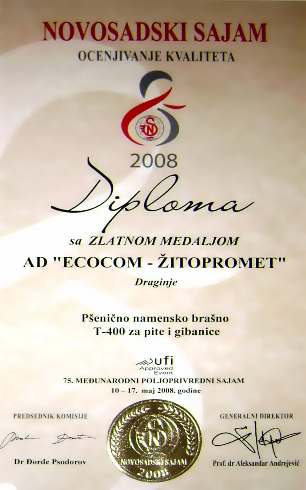 "Vest da je Akcionarsko društvo ECOCOM ŽITOPROMET iz Draginja, na letošnjem Međunarodnom sajmu u Novom Sadu, odlikovano sa dve zlatne medalje za naj kvalitetnija brašna, primljene je u ovoj prestižnog kompaniji kao dugo očekivano priznanje za više decenijski kvalitetan rad u oblasti otku pa i prerade žitarica. Iskustvo i tradicija, udruženi sa novim tehnologijama za čuvanje i meljavu pšenice, vera u budućnosttih zelenih fabrika pod otvorenim nebom – osnovne su karakteristike firme koja je, kao zvanični skladištar Direkcije za robne rezerve Srbije i jedna od okosnica razvoja Tamnave, uspešno izdržala proveru vremena i ima ambiciozne programe za dalje unapređenje proizvodnje i saradnje saratarima šireg područja" ...