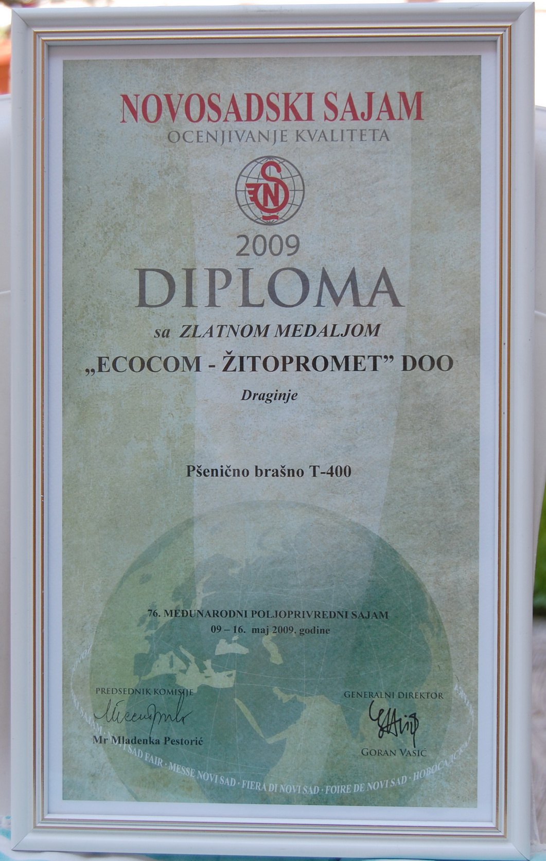 "Vest da je Akcionarsko društvo ECOCOM ŽITOPROMET iz Draginja, na letošnjem Međunarodnom sajmu u Novom Sadu, odlikovano sa dve zlatne medalje za naj kvalitetnija brašna, primljene je u ovoj prestižnog kompaniji kao dugo očekivano priznanje za više decenijski kvalitetan rad u oblasti otku pa i prerade žitarica. Iskustvo i tradicija, udruženi sa novim tehnologijama za čuvanje i meljavu pšenice, vera u budućnosttih zelenih fabrika pod otvorenim nebom – osnovne su karakteristike firme koja je, kao zvanični skladištar Direkcije za robne rezerve Srbije i jedna od okosnica razvoja Tamnave, uspešno izdržala proveru vremena i ima ambiciozne programe za dalje unapređenje proizvodnje i saradnje saratarima šireg područja" ...